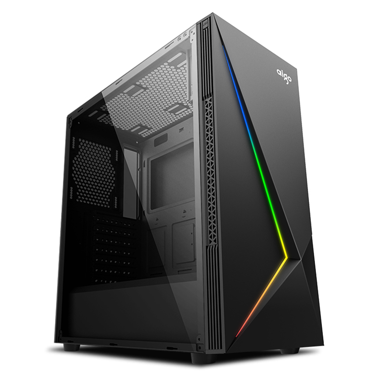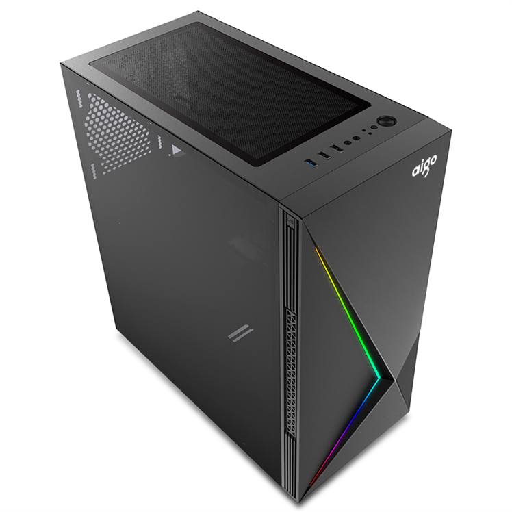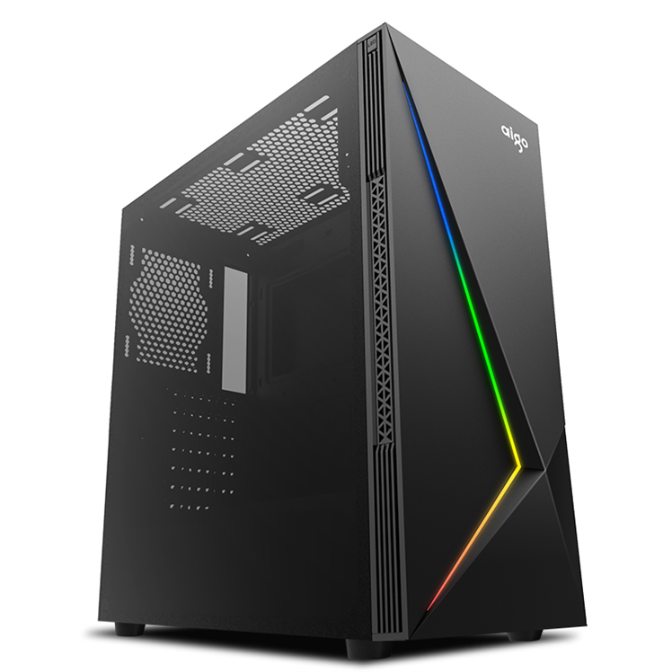商品名称:爱国者(aigo)极光E20黑色 半侧透电脑机箱(支持ATX主板/前面板自带幻彩灯条/半侧透亚克力侧板)
