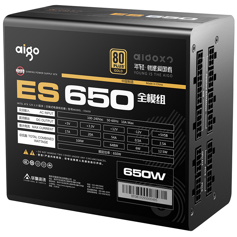 商品名称:爱国者爱国者(aigo)额定650W 电竞ES650全模组电源