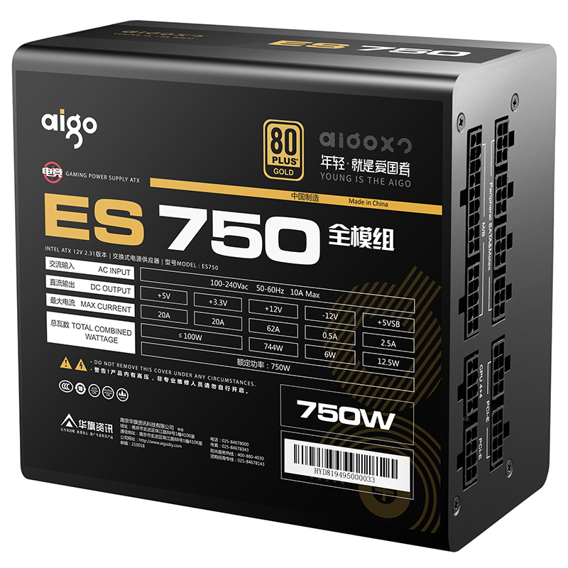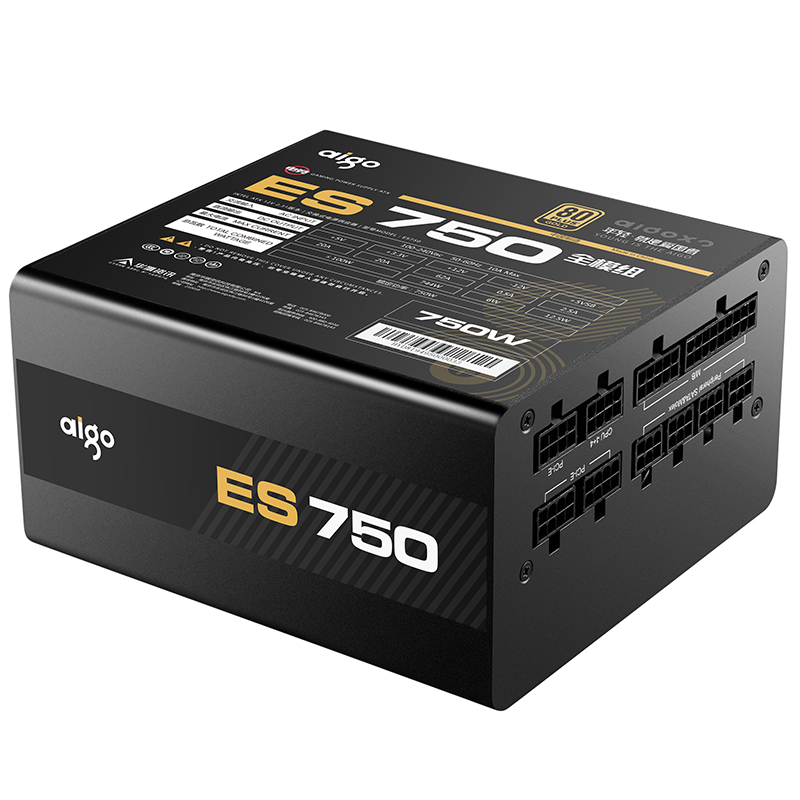 爱国者(aigo)额定750W 电竞ES750全模组电脑电源(七年质保/80Plus金牌认证/日系主电容/LLC谐振)