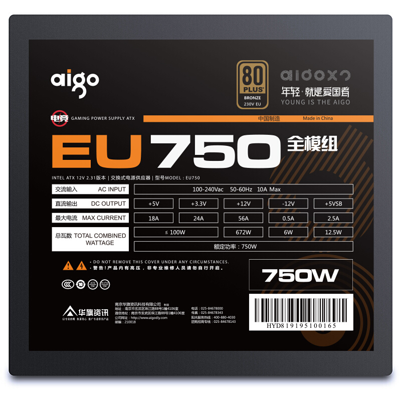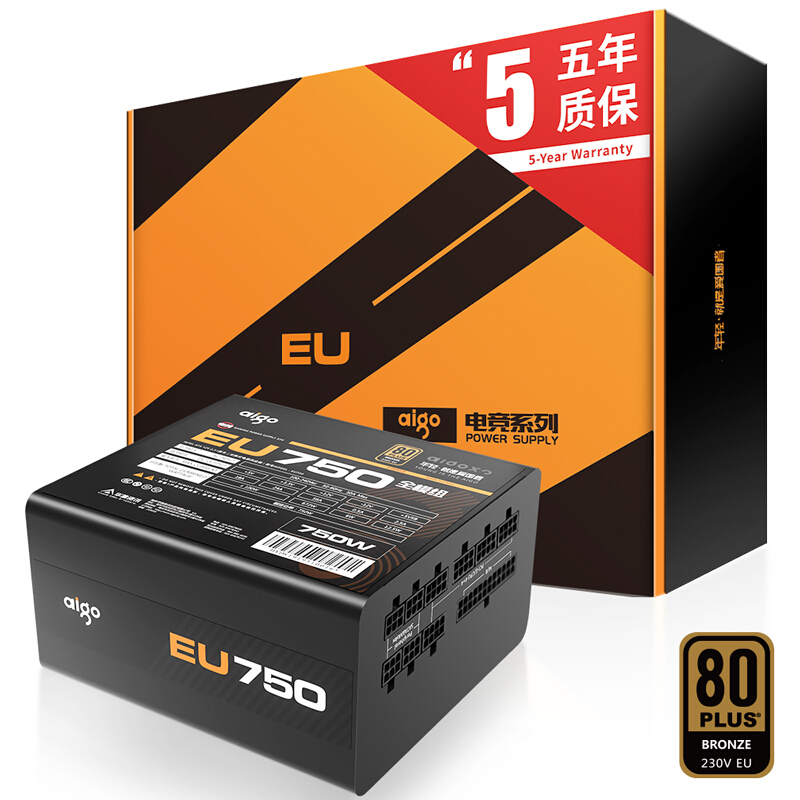 商品名称:爱国者电竞EU750全模组电源 商品毛重:2.56kg 商品产地:中国大陆 电源尺寸:标准电源(ATX) 风扇启停:不支持风扇启停 接线类型:全模组化 转换效率:铜牌(85%) 使用场景:大型游戏/电竞 电源功率:750W