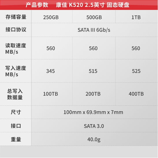 康佳/KONKA 250G固态硬盘 2.5英寸 SATA3.0接口 K520系列
