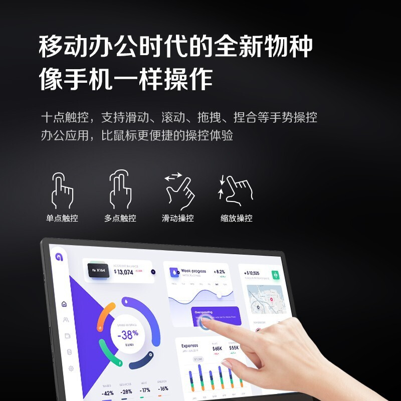 /8000mAh4感应,显示画面横向纵向模式自动切换。内置大容量电池,单次充电后,提供长达约小时续航时间。支持充电宝模式,AH-IPStype-CTouchWin1010typeC炫彩硬屏,带电池便携显示器,说走就走。认证电容触控屏,点触控,操作便捷,多功能接口,投屏、触控、充电一线轻松连接,接口,提供丰富的连接性和高兼容性,方便接驳,,等设备。自动方位MicroHDMISwitchPS4XboxUSBC/HDRModei-Menu接口反向对手机平板电脑充电。不闪屏技术,低蓝光设置,设置,支持调节软件,轻薄机身设计,厚度约9.9mm0.99kg,净重约,轻松装入手提包,为出行带来更多的便捷与乐趣,标配壁挂适配铁片,支持壁挂安装。