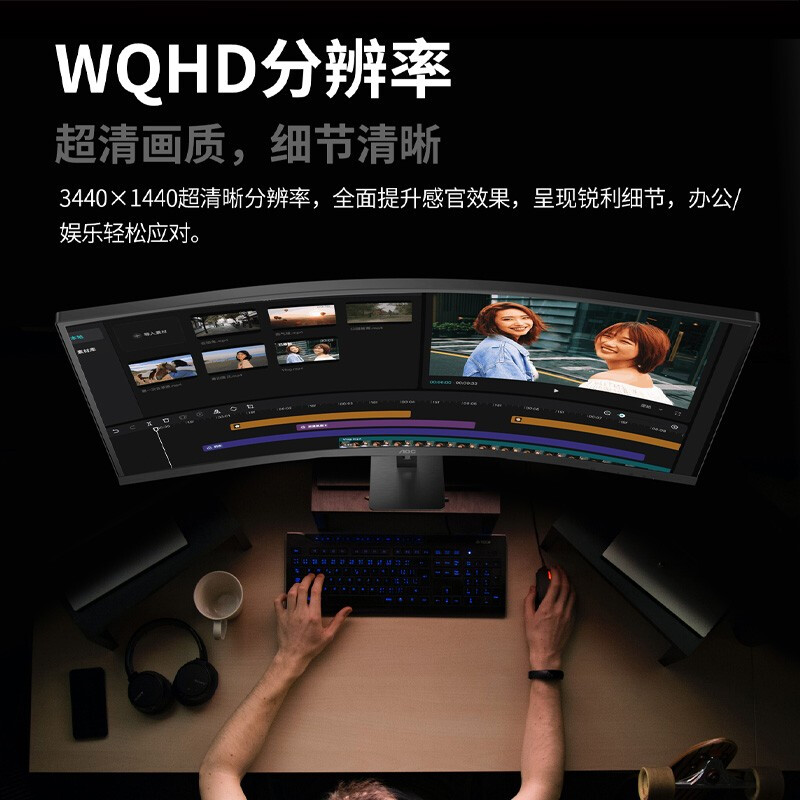 34寸 曲面144HZ 21:9 VA广视角硬屏,升降,快拆支架设计(支架高度150mm)HDMI2.0(HDR)2,DP1.4(HDR)2, USB3.2 Gen14, USB上行,音频输出对比度1000:1(静态),8000万:1(动 态),3440x1440@100Hz (HDMI) 3440x1440@144Hz (DP)色彩精准度E<2(平均值);不闪屏,低蓝光设置;支持i-Menu调节软件;支持e-Saver管理软件,智能关机;支持VESA壁挂; HDCP功能,HDR Mode设置,ECO阅读模式,AdaptiveSync,FPS/RTS等游戏模式;PBP功能
