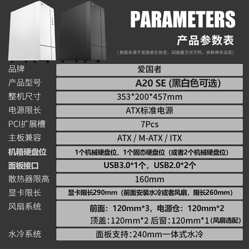 爱国者 A20SE 标准版 黑色 台式家用电脑机箱 台式主机机箱