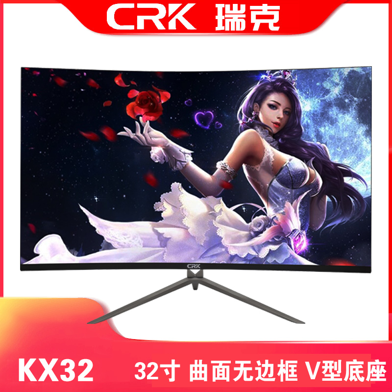 瑞克 KX32 32寸黑色 1800R曲面无边框显示器 V型底座 HDMI+VGA