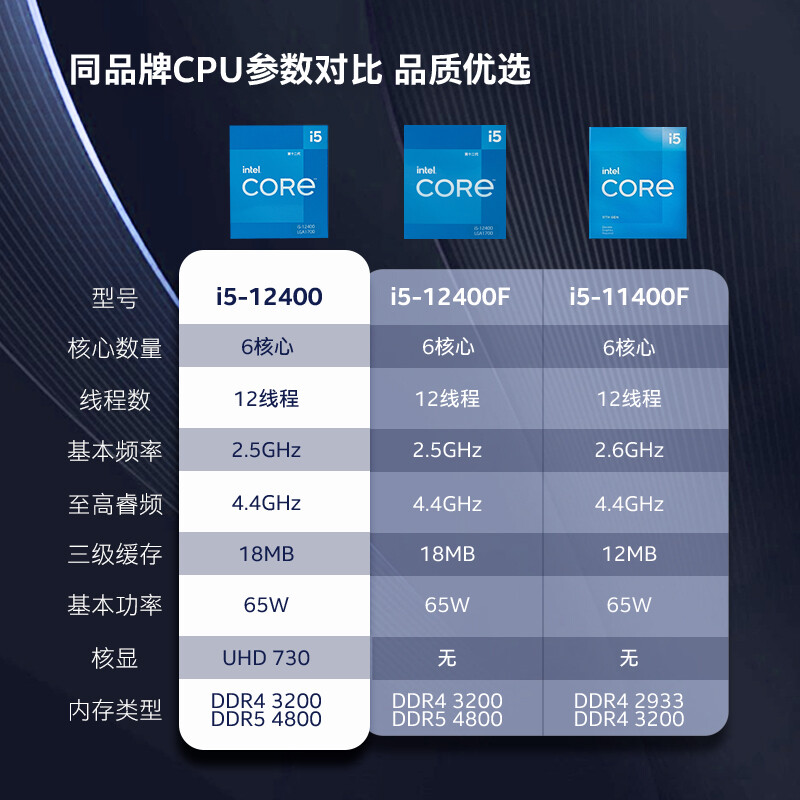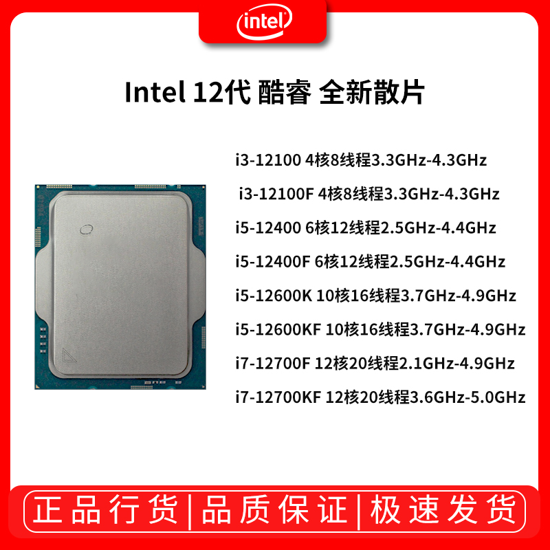 英特尔(Intel)12代 酷睿 i5-12400 处理器 6核12线程单核睿频至高可达4.4Ghz 散片