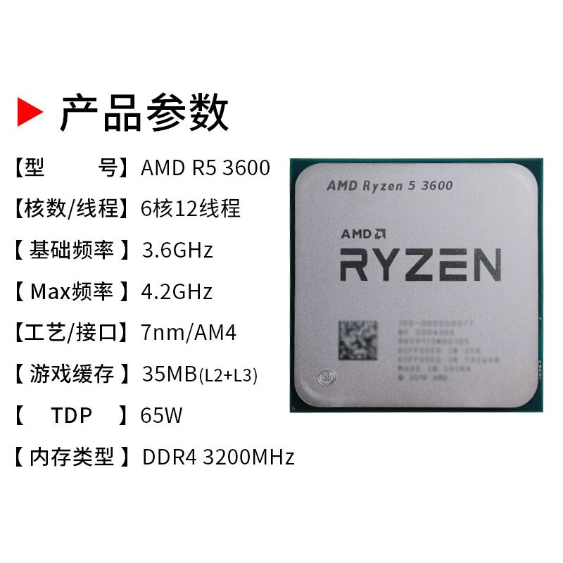 AMD 锐龙R5-3600(散片)3.6G六核十二线程 AM4 散片