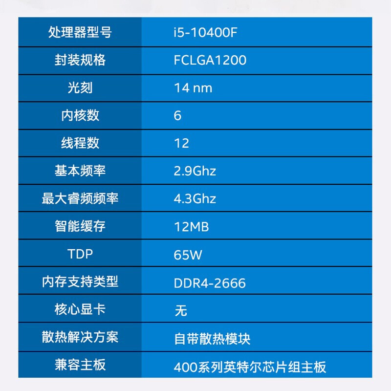 十代酷睿 i5-10400F 2.9G 六核12线程