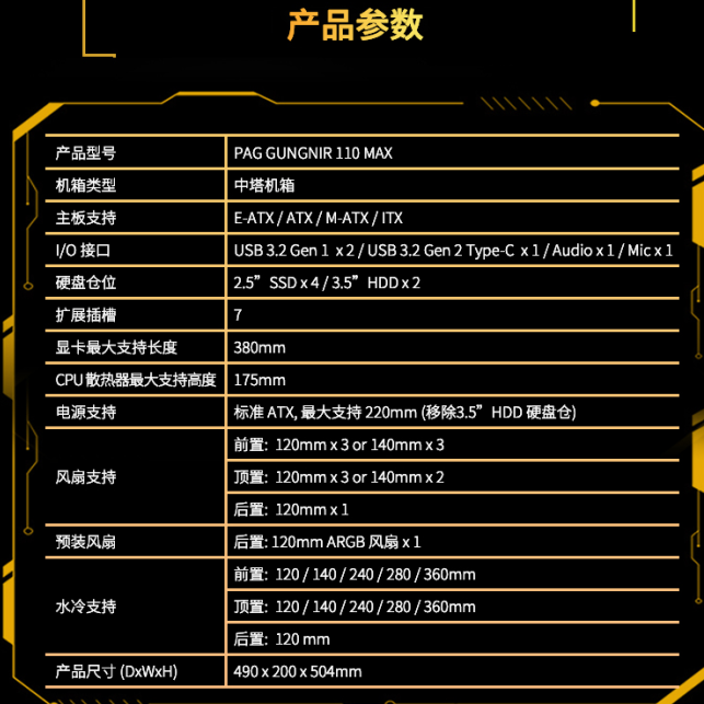 微星 PAG GUNGNIR 110 MAX 氪金枪MAX 黑色 全侧透游戏电竞水冷机箱