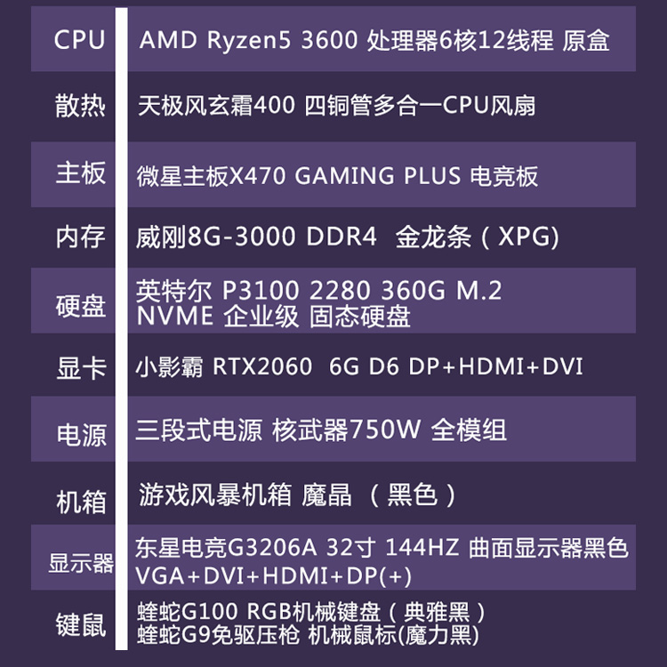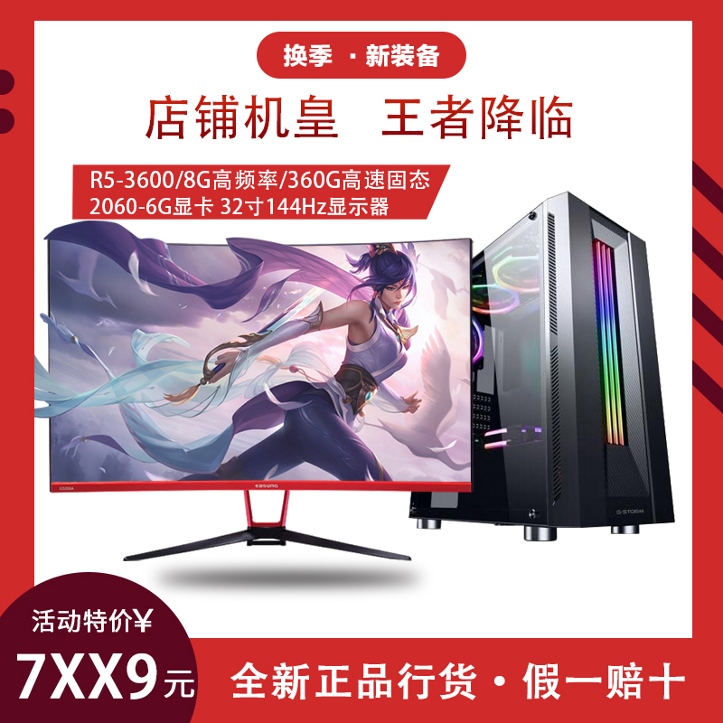 【R5-3600整机AMD R5 3600-六核12线程/8G/ 360GSSD/RTX2060/键鼠/电竞32寸曲面144Hz