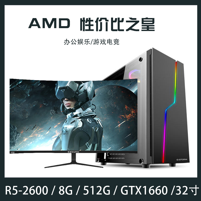 【R5-2600整机】AMD 锐龙2600 六核十二线程 /8G/512GSSD/6G显卡 32寸全套整机