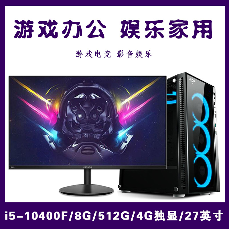 【i5-10400F整机】酷睿i5-10400F/8G内存/512G固态/4G独显/27寸显示器 游戏办公家用娱乐整机爆款