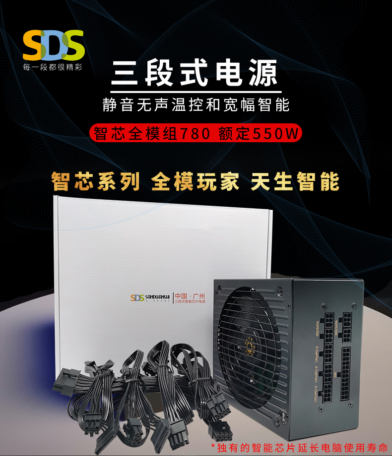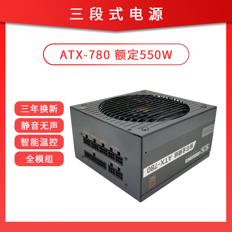 三段式电源 智芯全模组780 额定550W 智能温控宽幅