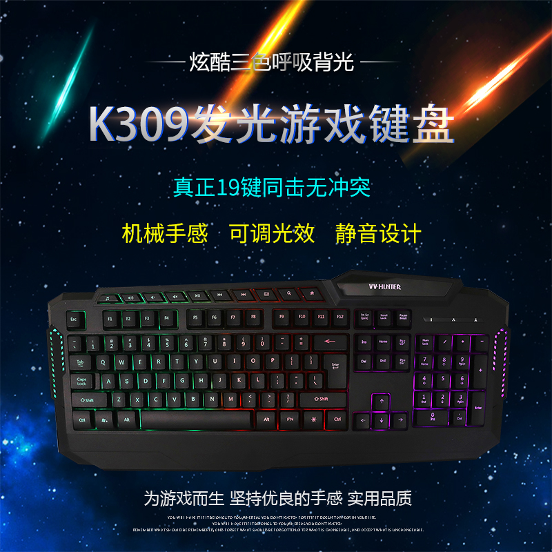 西部猎人 K309 黑色 专业电竞游戏机械键盘 青轴网吧网咖游戏