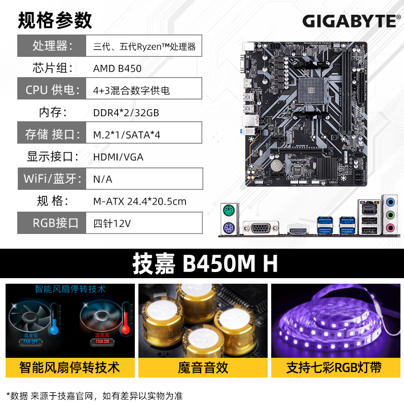 技嘉主板 B450M-H VGA+HDMI 昆明电脑批发