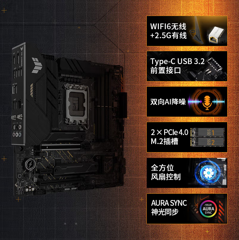 华硕TUF GAMING B660M-PLUS WiFi D5 HDMI+DP 昆明电脑组装