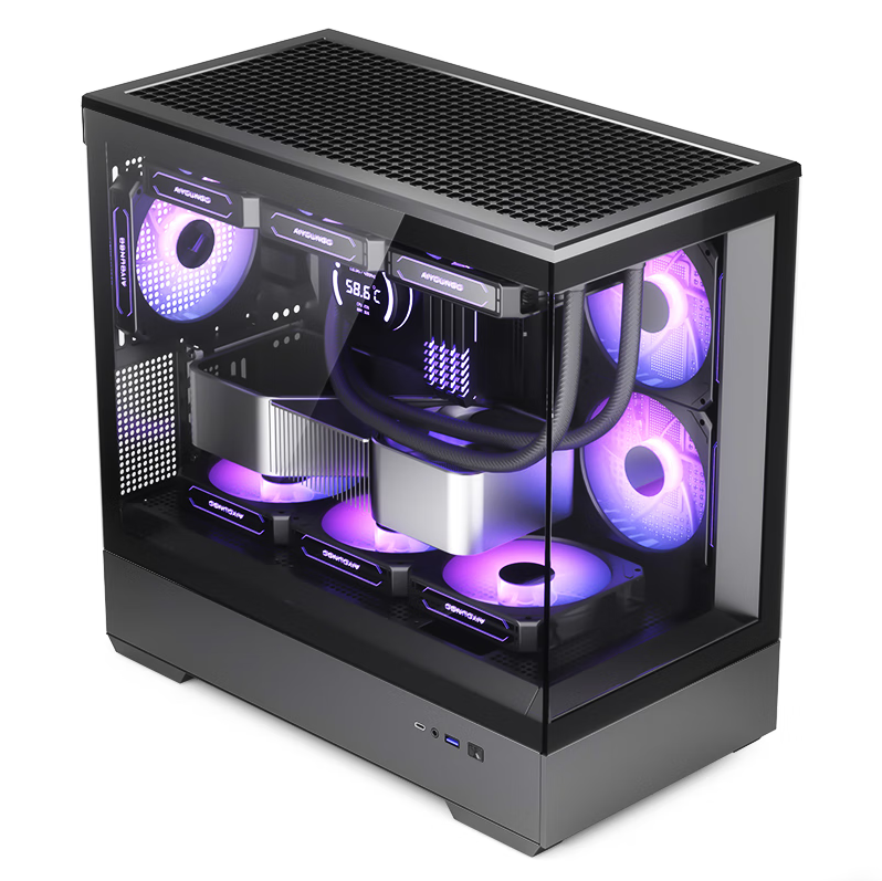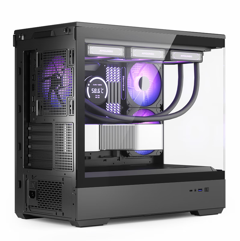 爱国者(aigo)星璨 岚 黑色 游戏电脑主机箱 支持360水冷/M-ATX主板//四面快拆/270°海景房