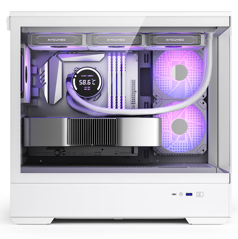 爱国者(aigo)星璨 岚 白色 游戏电脑主机箱 支持360水冷/M-ATX主板//四面快拆/270°海景房