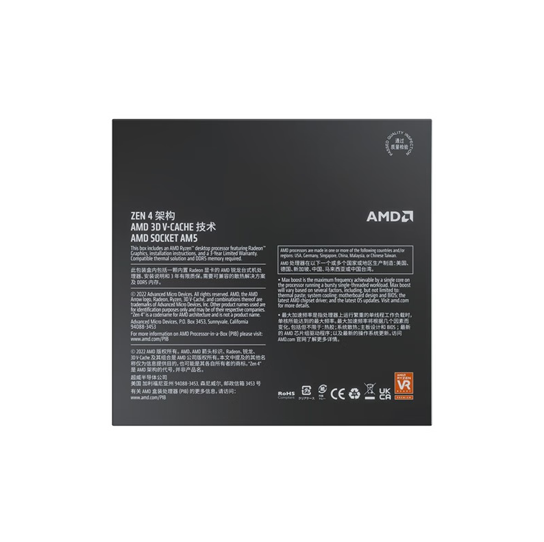 锐龙R9 7900X 3D 5nm 4.7G 十二核二十四线程/AM5 140MB游戏缓存加速频率至高5.6Ghz 盒装C