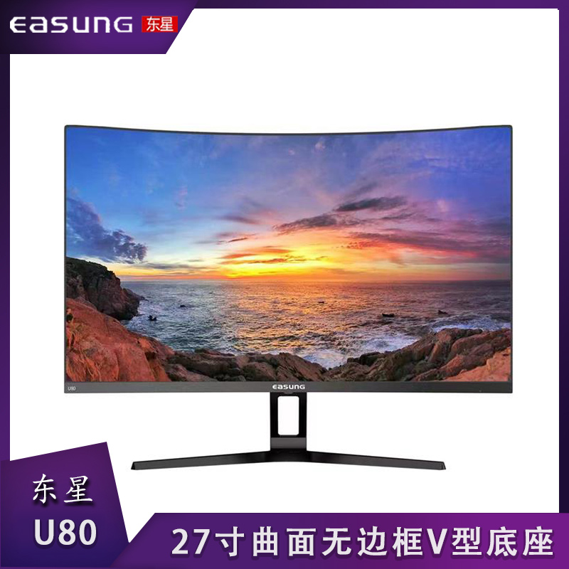 东星U80 27寸75Hz 1500R曲面黑色无边框V型底座显示器 HDMI+VGA