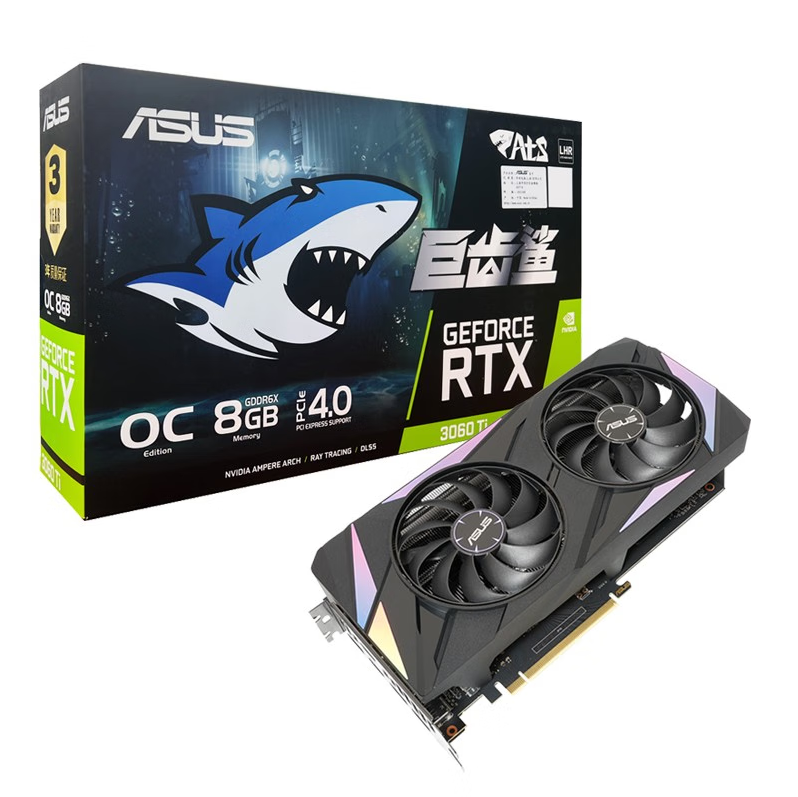 华硕(ASUS)ATS-RTX3060TI-O8GD6X-GAMING-V2巨齿鲨 电竞游戏独立显卡
