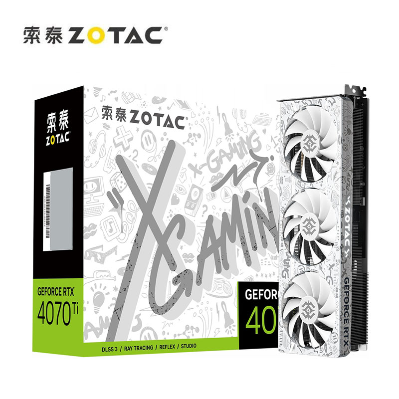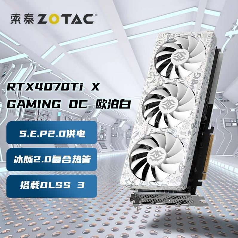 索泰(ZOTAC)RTX4070TI-12GD6X X-GAMING OC 欧泊白 电竞游戏 3D设计建模新品电脑独立显卡