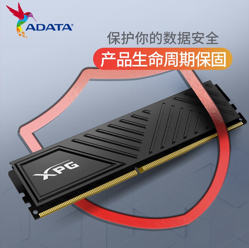 威刚XPG BBKD35 8G-3200 DDR4 威龙条(黑) 台式机电脑电竞马甲内存