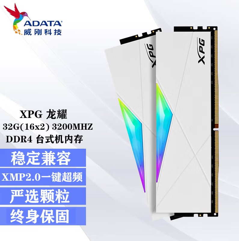 威刚龙耀DW50 32G-3200(16GX2)RGB灯条(釉白)套条马甲