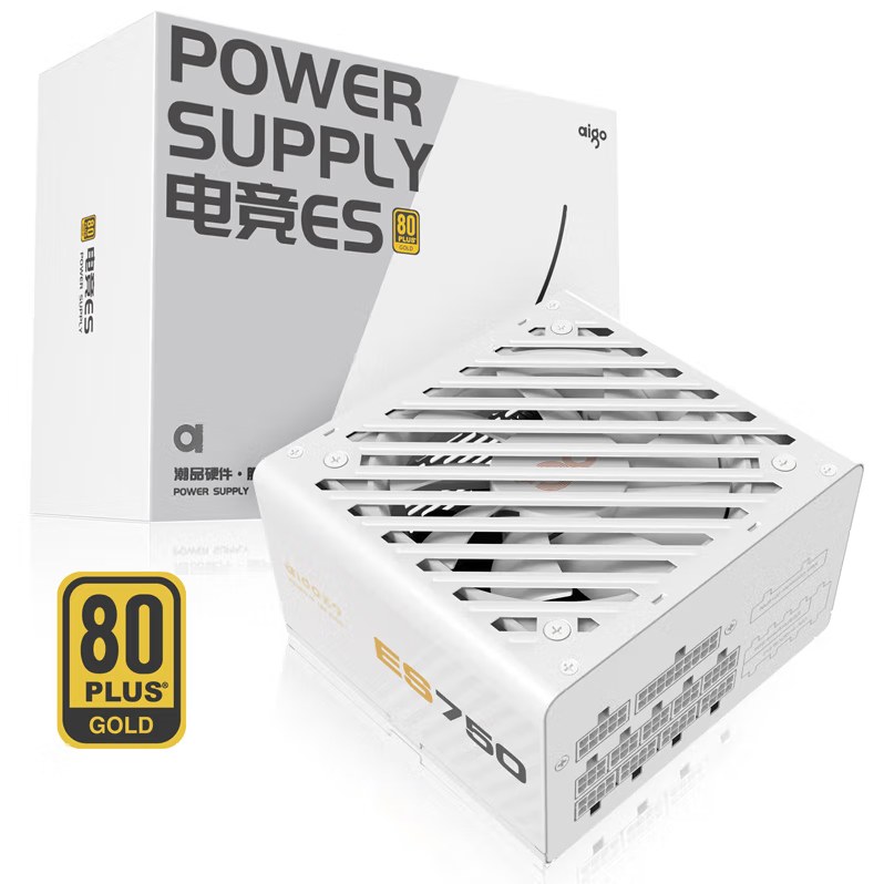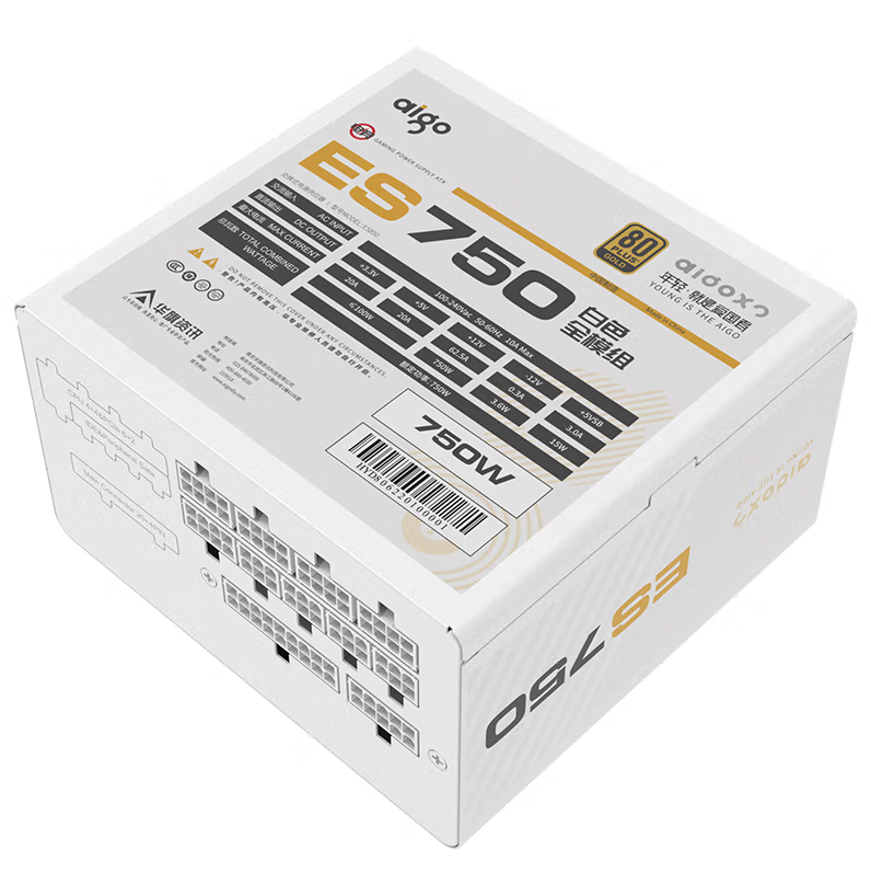 爱国者(aigo)额定750W ES750白色 全模组机箱电脑电源 白色模组线/80plus金牌/双CPU供电