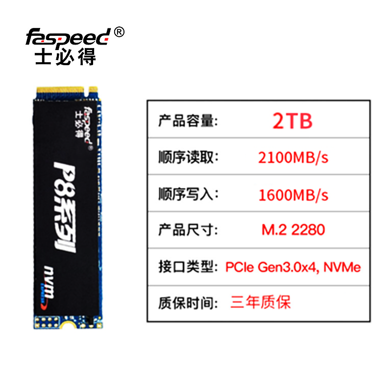 士必得固态 P8-2TB M.2 NVME 固态硬盘笔记本电脑台式机SSD