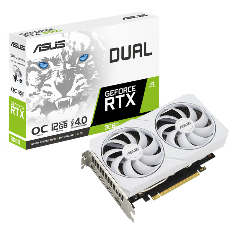 华硕(ASUS)DUAL-RTX3060-O12G-WHITE白色 电竞游戏电脑独立显卡