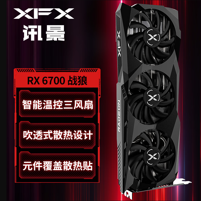 讯景(XFX)RX 6700 战狼版 电脑电竞游戏独立显卡