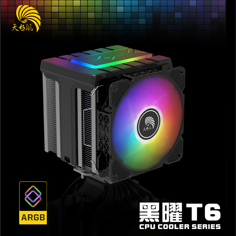 天极风散热器 黑曜T6 RGB幻彩 6铜管散热器风扇台式机电脑铜管静音