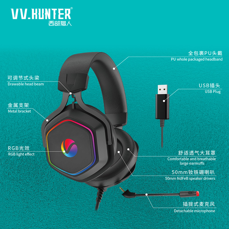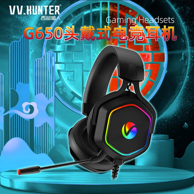 西部猎人G650网咖电竞游戏竞技耳机7.1声道RGB灯效USB接口降噪耳机