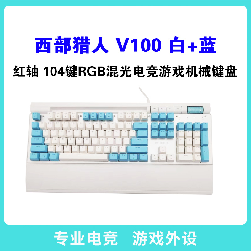 西部猎人 V100 红轴(白+蓝) 104键有线机械键盘