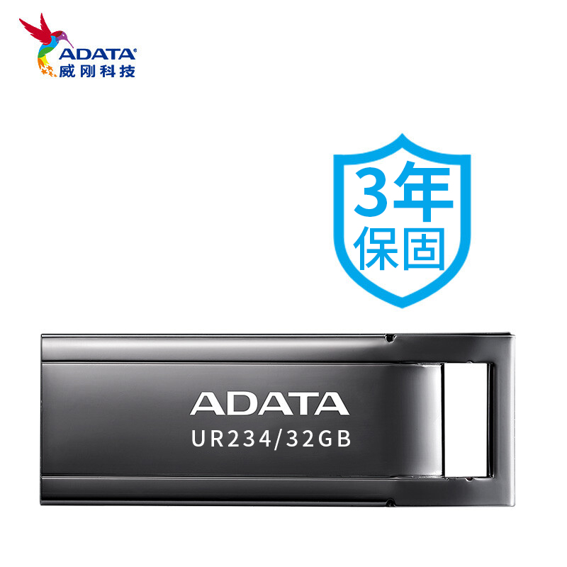 威刚(ADATA)UR340 金属 黑色 32GB 高速传输U盘USB3.2接口 招标投标电脑办公车载音箱存储商务优盘