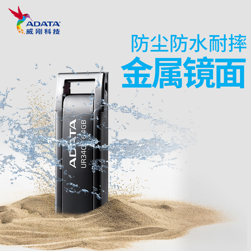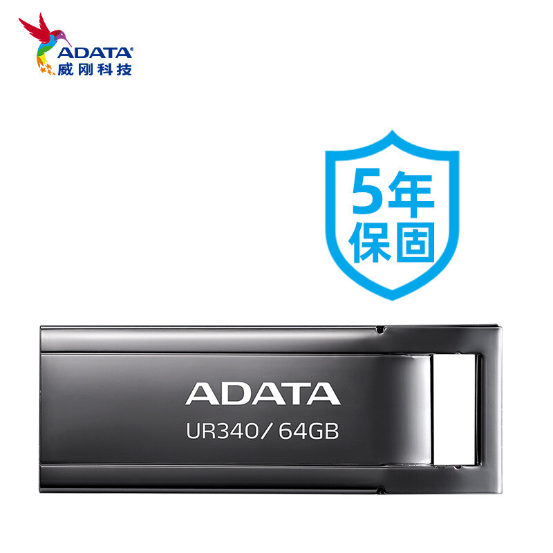 威刚(ADATA)UR340 金属 黑色 64GB 高速传输U盘USB3.2接口 招标投标电脑办公车载音箱存储商务优盘