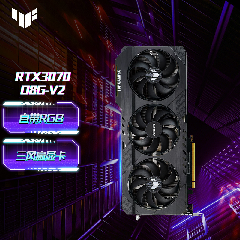 华硕(ASUS)TUF-RTX3070-O8G-V2-GAMING电竞游戏专业独立显卡 自带RGB/三风扇显卡 显卡批发