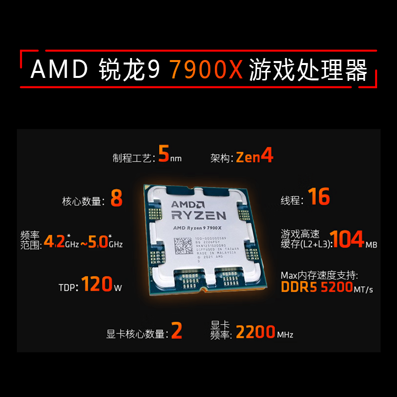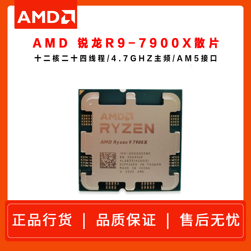 AMD 锐龙9 7900X 处理器 (r9)散片 5nm 12核24线程 4.7GHz 170W AM5接口 云南CPU批发