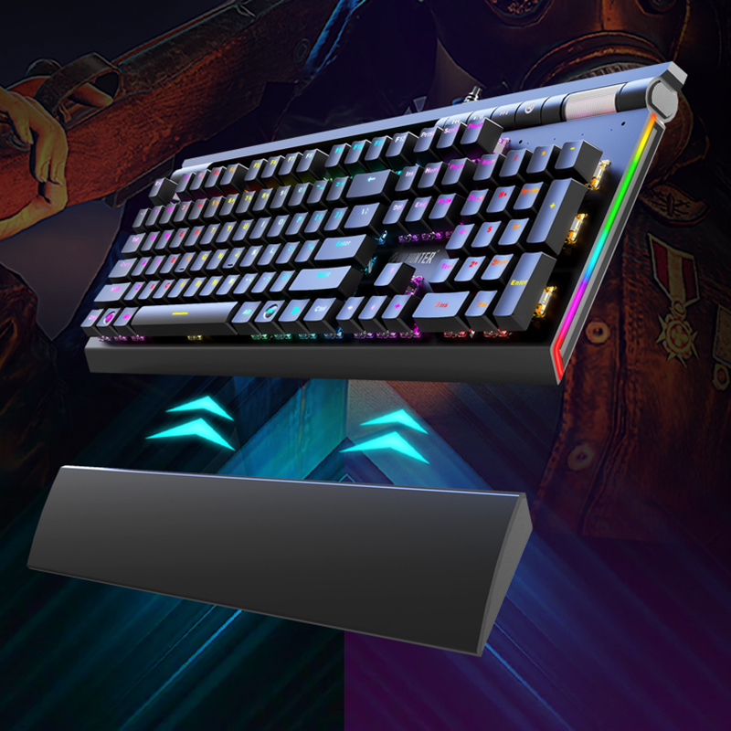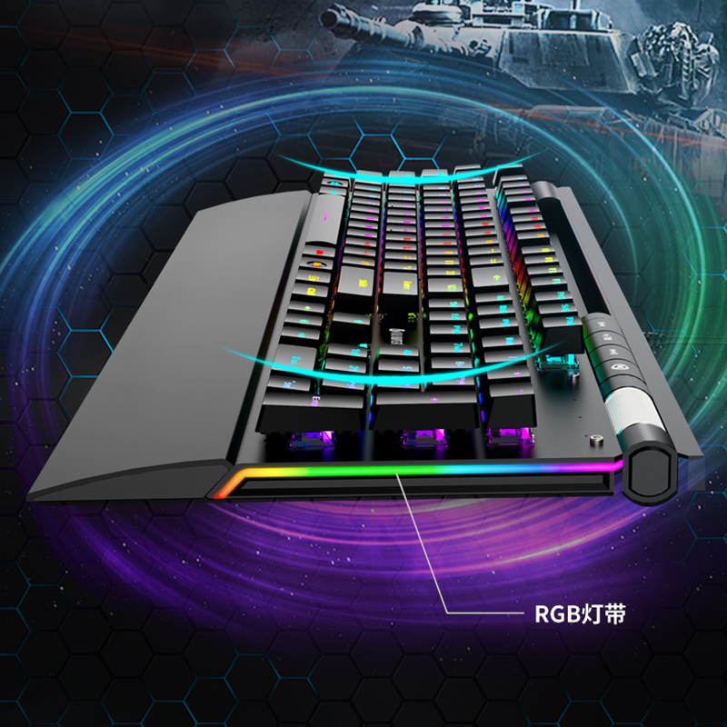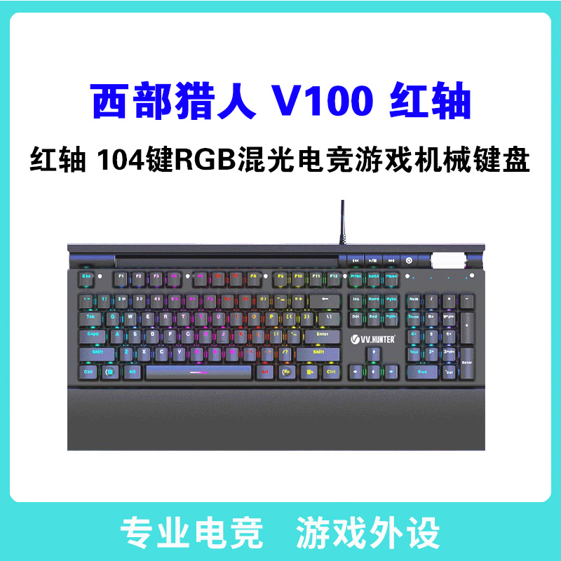 西部猎人V100 独家私模 带多媒体按键 宏定议编程 托盘 手机支架 RGB混光电竞游戏机械键盘 红轴 昆明键盘批发
