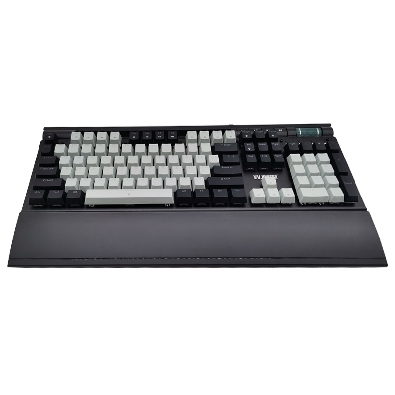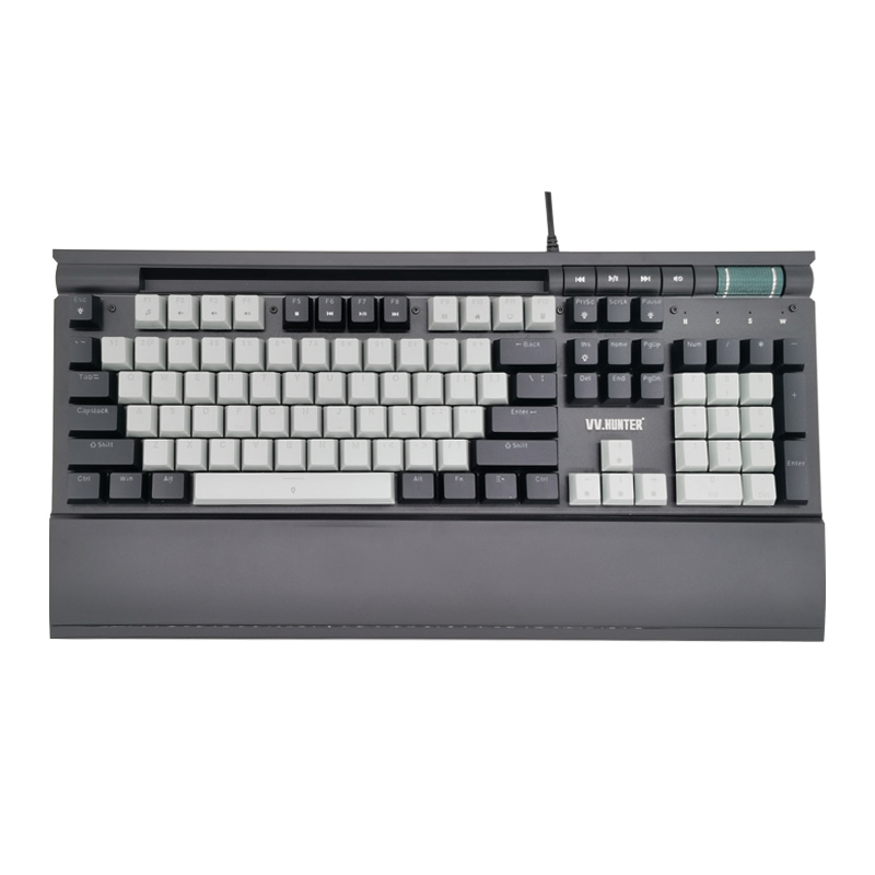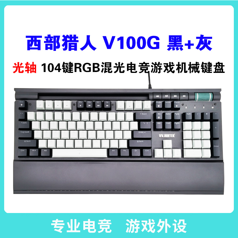 西部猎人 V100G 光轴(黑+灰)专业电竞游戏有线机械键盘 独家私模 带多媒体按键 宏定议编程 托盘 手机支架 RGB混光 昆明键盘批发