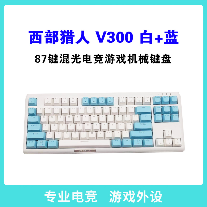 西部猎人 V300 混光电竞游戏机械键盘 87键 白+蓝 昆明键盘批发