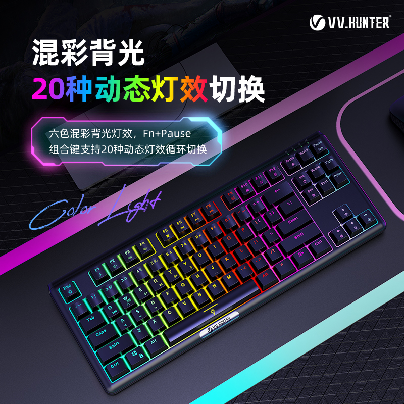 西部猎人 V300W 青轴 黑色 87键三模无线机械键盘(带蓝牙) 云南键盘批发