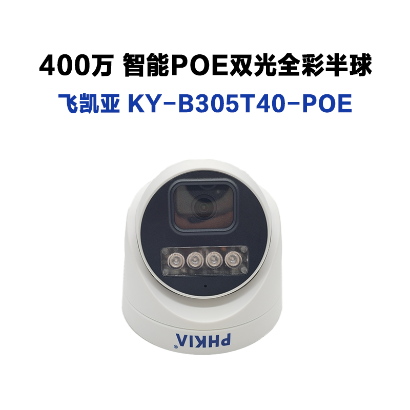 飞凯亚摄像头 KY-B305T40-POE 2.8MM 400万 智能POE双光全彩半球