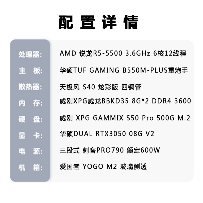 【锐龙R5-5500游戏主机】AMD锐龙R7-5500/B550/16G/500G/RTX3050 游戏主机