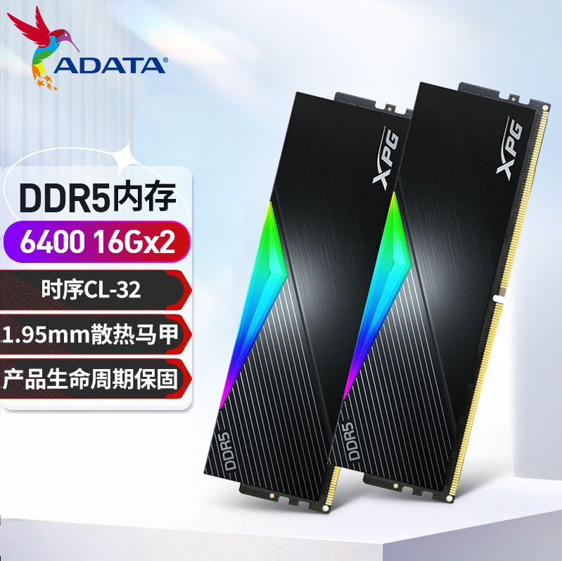 威刚XPG LANCER RGB 32G-6400(16GX2)灯条(黑)DDR5