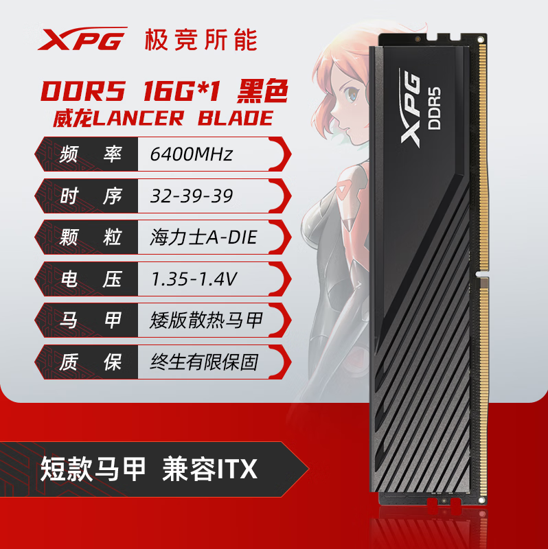 威刚(ADATA) XPG 威龙BLADE 6000 16G DDR5(黑)大马甲 海力士A代颗粒 台式机内存