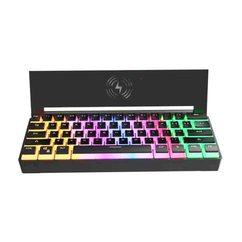 爱国心 GK618 黑色布丁 2.4G无线蓝牙机械键盘 支持热插拔 双拼布丁键帽 可手机无线充电 三模青轴