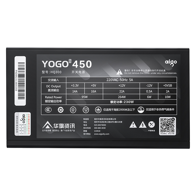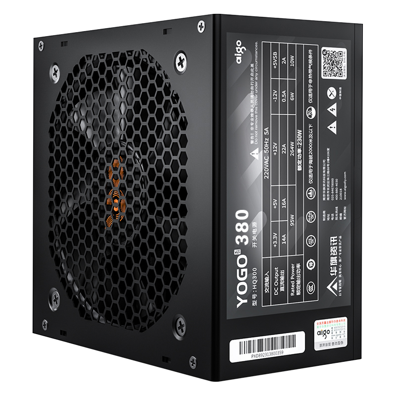 爱国者(aigo) YOGO380 直出线【额定230W】 黑色 电脑开关电源 品质电容/宽幅设计/不虚标