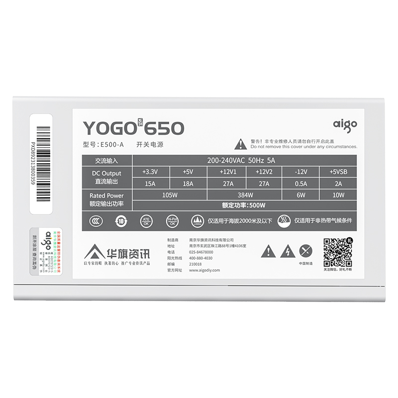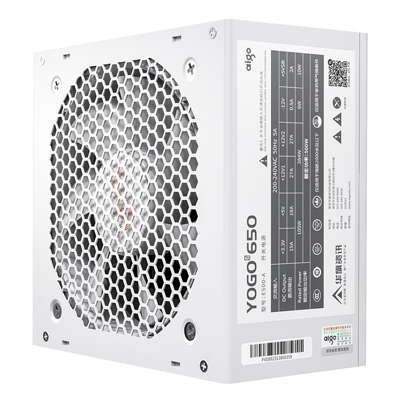 爱国者(aigo) YOGO650 直出线【额定500W】 白色 电脑开关电源 品质电容/宽幅设计/不虚标